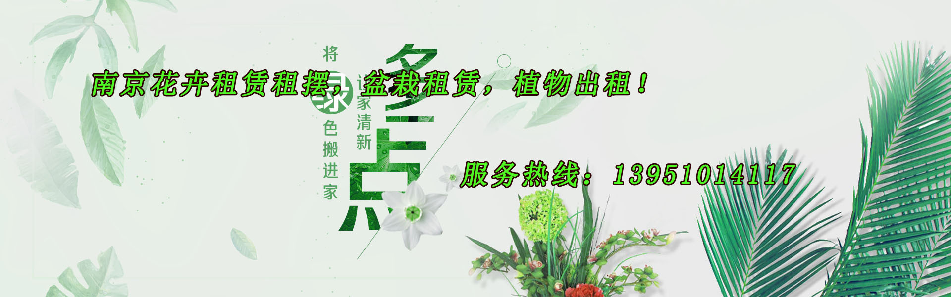 南京市江寧區(qū)綠地花卉園藝中心是南京專業(yè)的室內(nèi)綠植租出、花卉租賃、鮮花租擺公司,致力于室內(nèi)植物租賃、鮮花盆景出租、綠化養(yǎng)護(hù)、室內(nèi)租擺花卉、花卉植物租賃、花木租擺、盆栽養(yǎng)護(hù)及辦公室花卉布置服務(wù)。